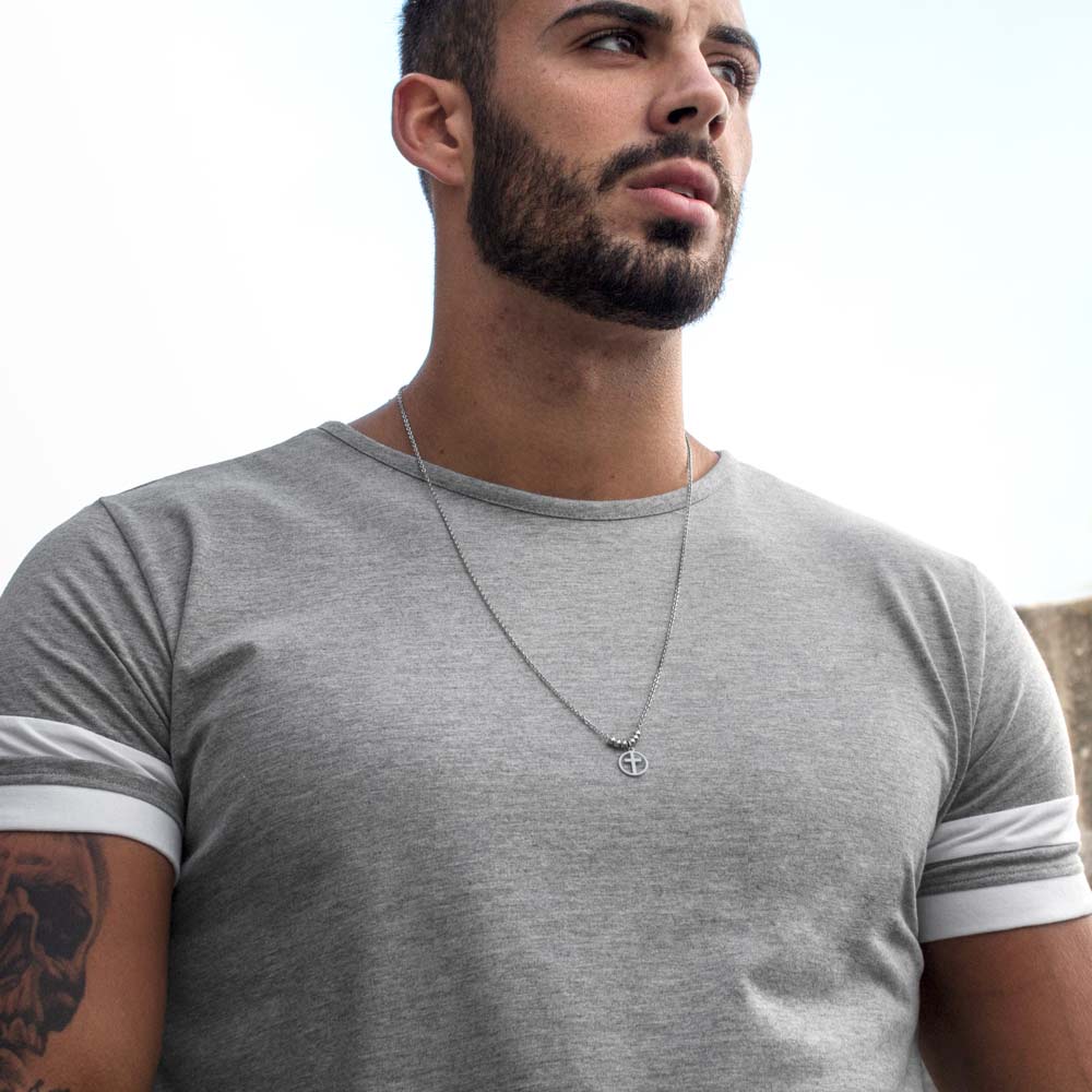 Collar hombre en color plata de acero inoxidable con colgante de cruz. Este collar combina elegancia y simbolismo, ideal a hombres que quieren expresar su fe con estilo. Fabricado en acero inoxidable, este collar garantiza durabilidad y resistencia al desgaste, manteniendo su brillo en el tiempo. Ideal a el uso diario a ocasiones especiales, es un regalo significativo y sofisticado.