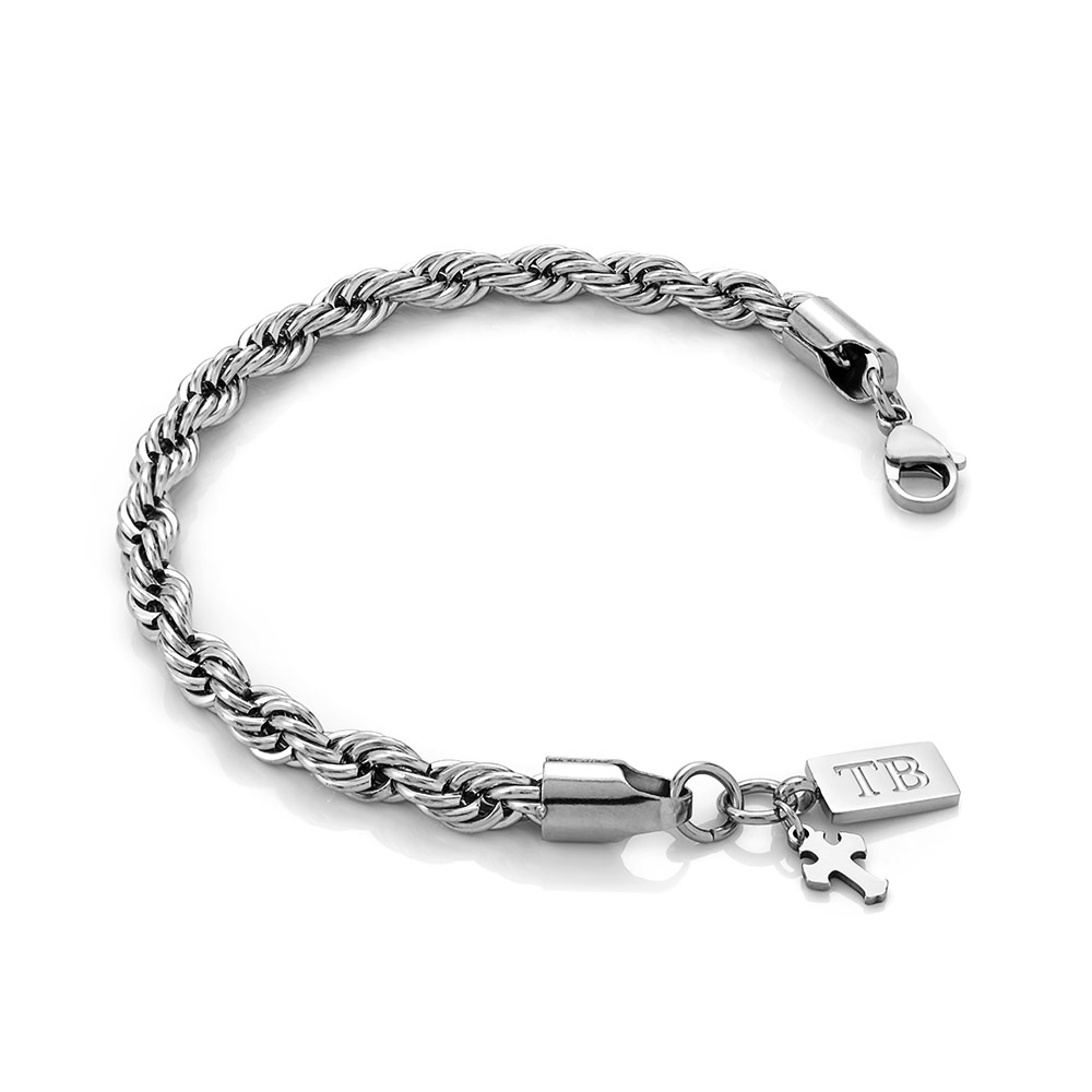 Esta pulsera en color plata hombre con colgante en forma de cruz es el accesorio ideal para quienes buscan un look moderno con un simbolismo de fe y protección.